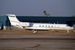 The above two photos capture G-V (c/n 603) VH-CRQ as departs SoCal at 17:58 pst following a visit to the Gulfstream Service Center.